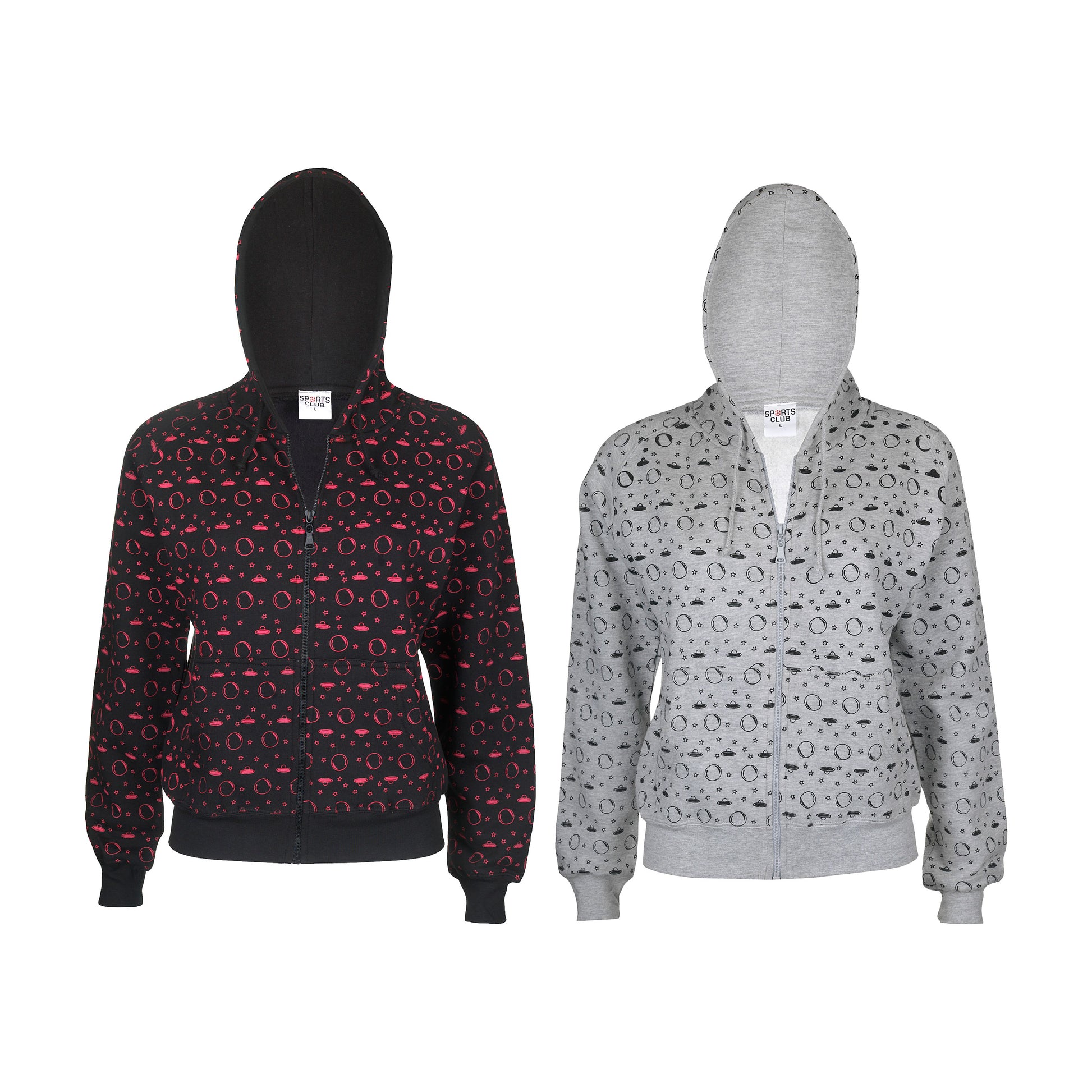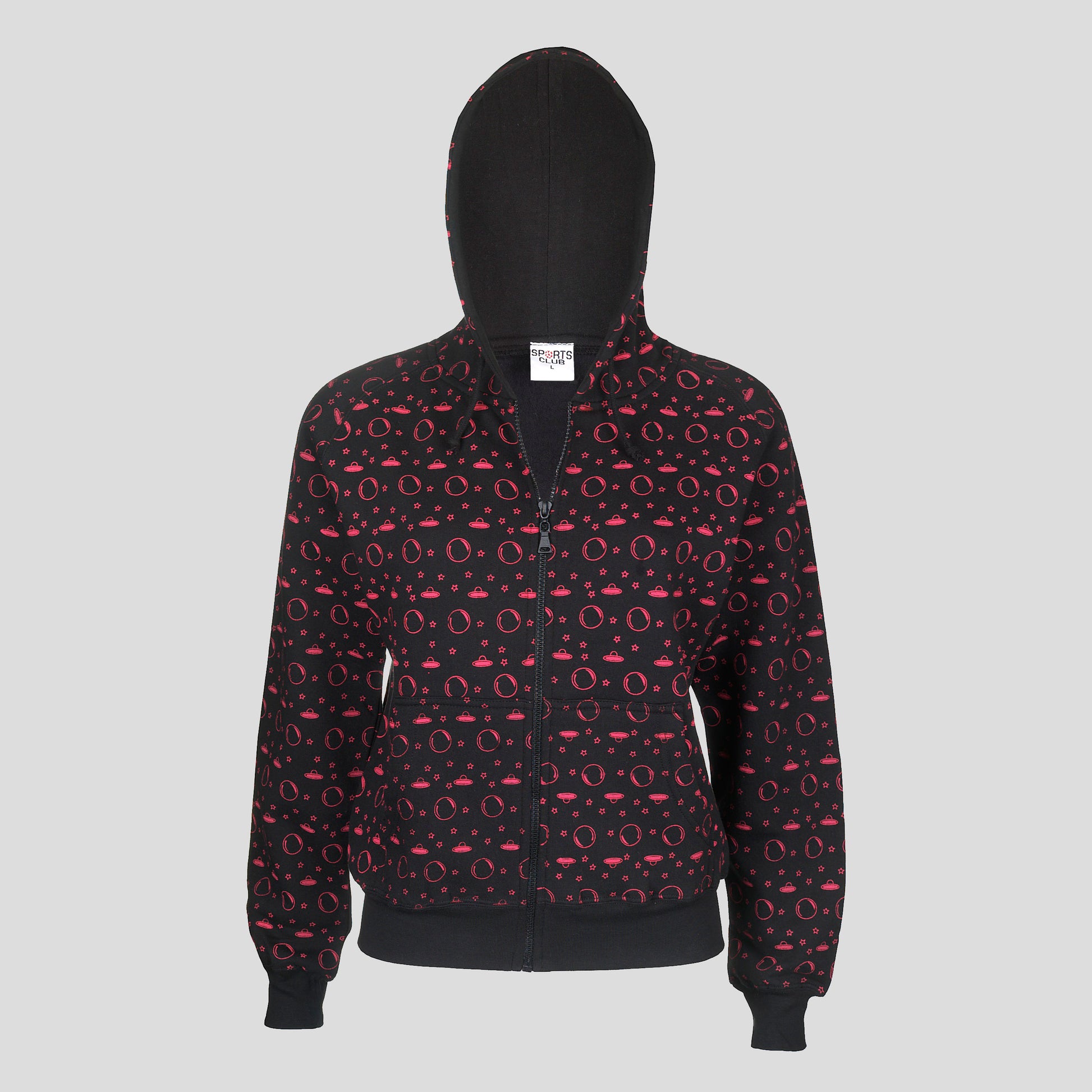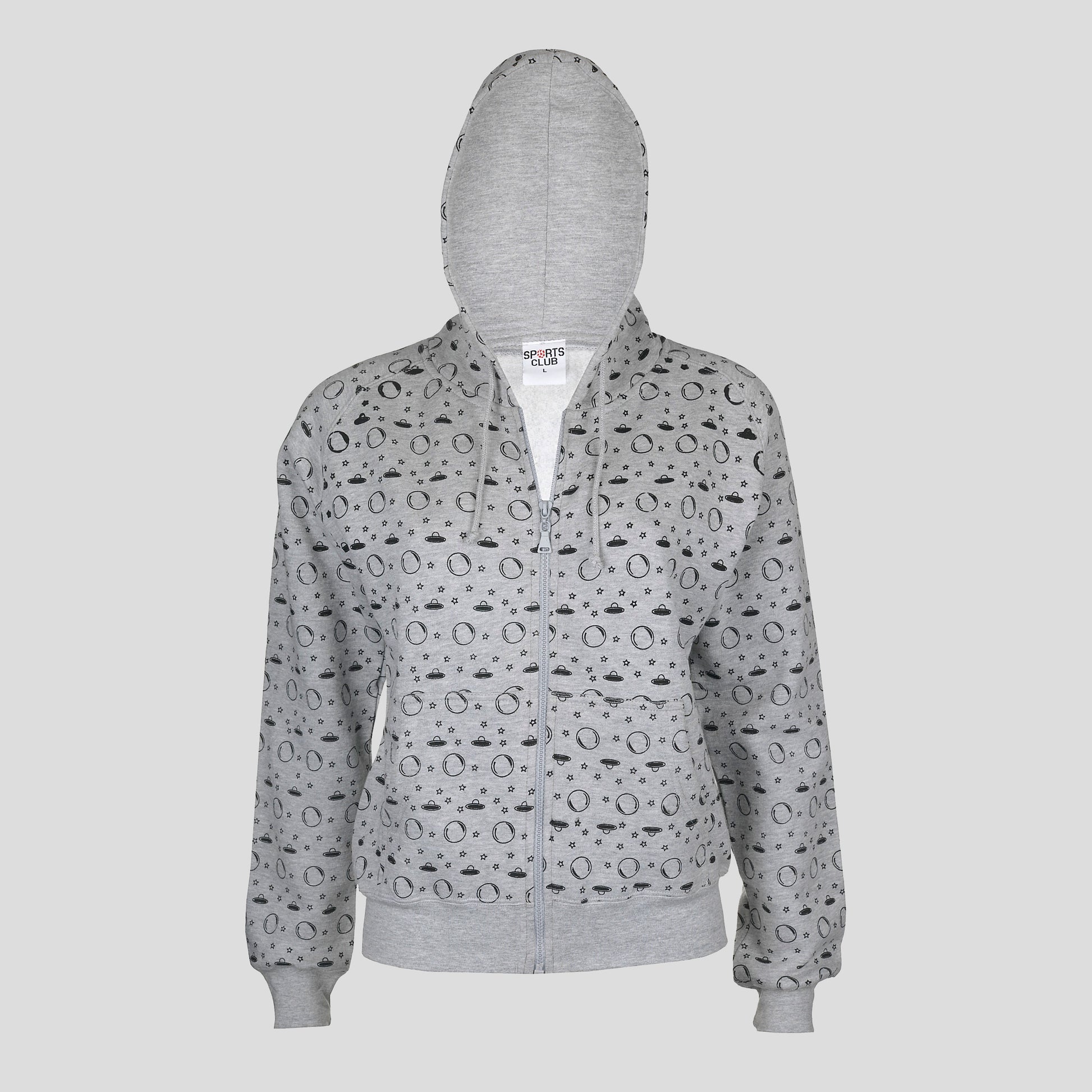 Ladies All-Over Star Moon UFO Print Hoodie Cosmic Twist, Sci-Fi, Halloween, Goth