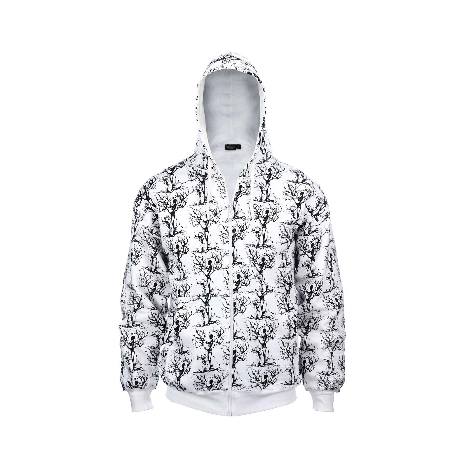 Unisex Winter Tree Skeleton Print Hoodie, 100% Cotton, Heavyweight ZipUP Design, Gothic, Rock, Metal, Punk